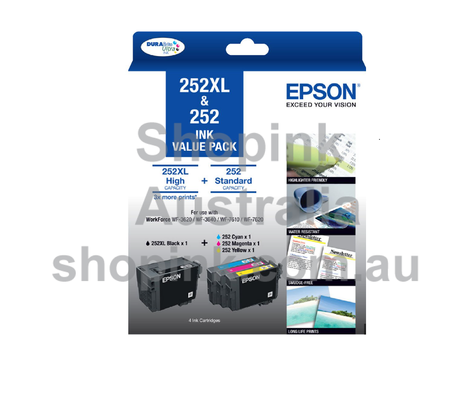 Order the Epson 252XL/252 Genuine Value Pack now and enjoy express delivery on all orders. Get the most out of your Epson printer with reliable ink that always ensures consistent performance and vibrant prints.