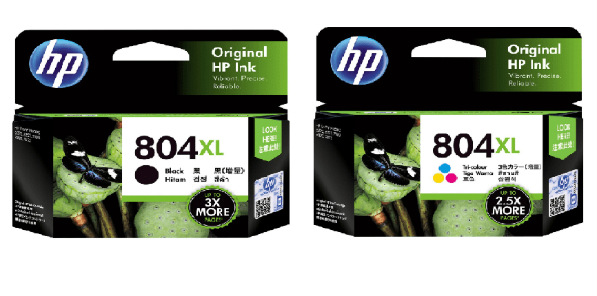 This value pack contains 1 Black and 1 Tri-Colour ink cartridges, the black ink cartridge has an estimated yield of 415 sheets and the tri-colour ink cartridge has an estimated yield of sheets. The HP 804XL Black and Tri-Colour Original Ink Cartridges deliver sharp, vibrant prints that last.